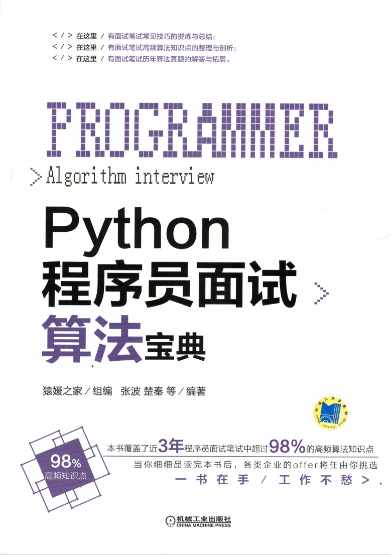书名:Python程序员面试算法宝典 作者:猿媛之家 出版:机械工业出版社